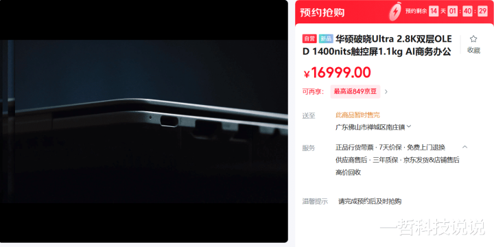 今天刷京东的时候,发现华硕破晓Ultra上线了预约价格——16999元,你没看错,一台14英寸的轻薄本直接干到了万元级别。